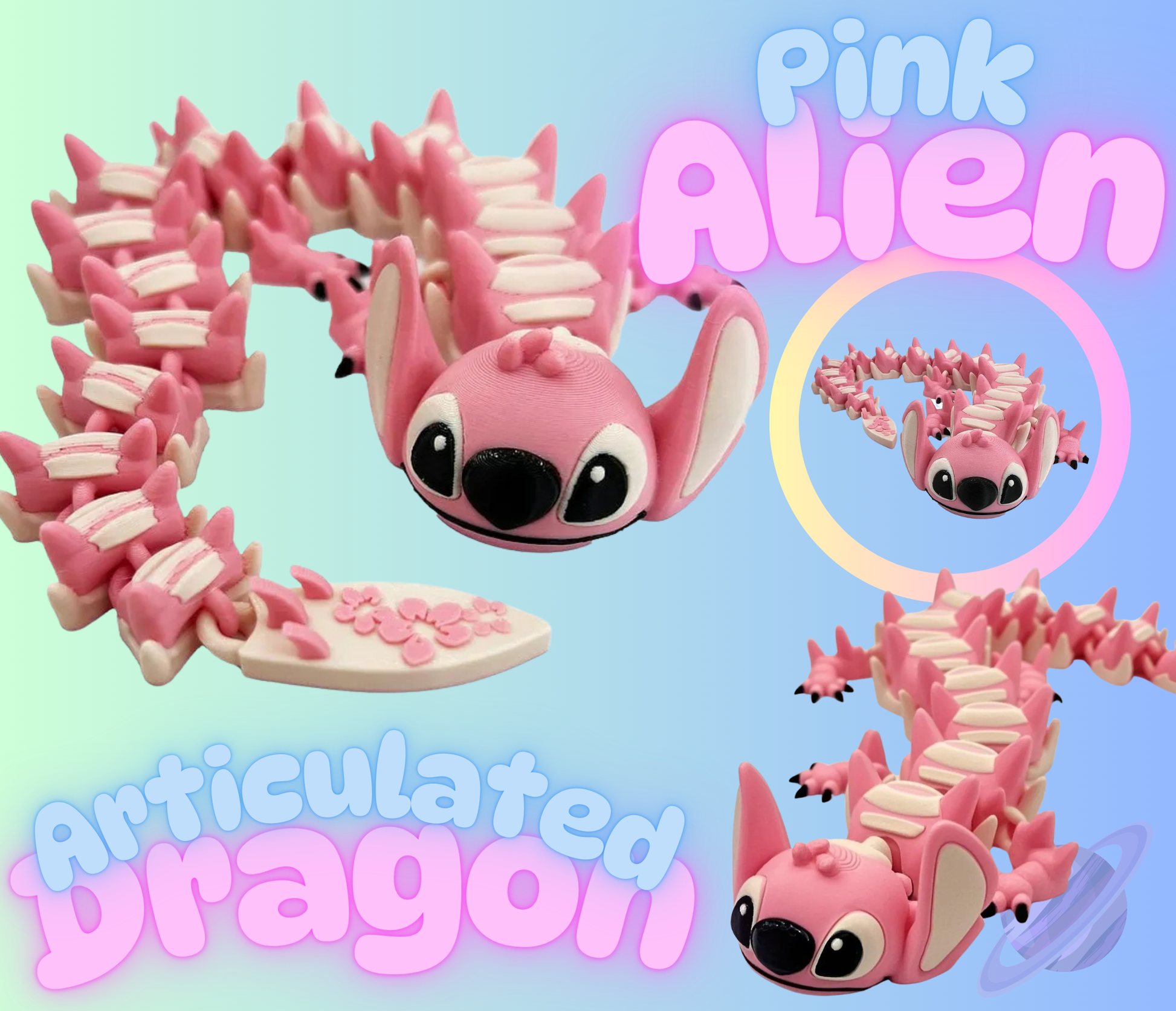 š Inspired by your favorite Hawaiian adventure movie characters, our Blue Alien and Pink Alien Articulated Dragons capture all the charm and mischief you adore!