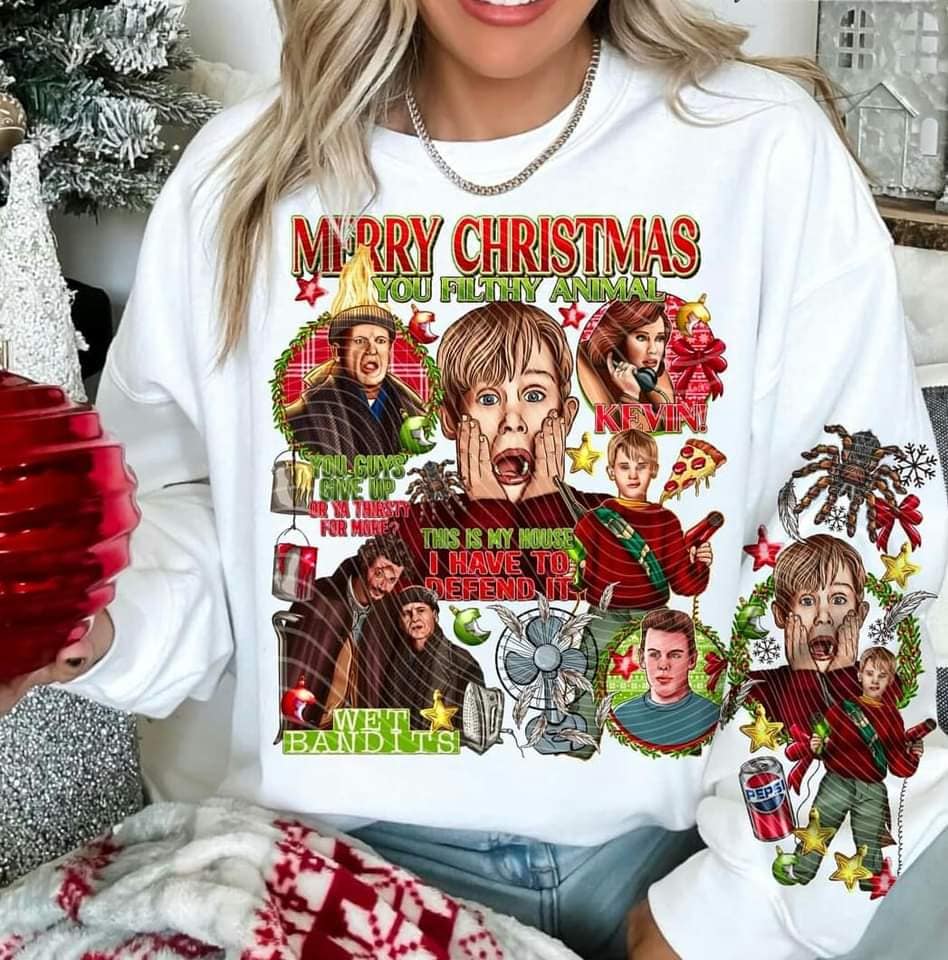 H ALONE CREWNECK SWEATSHIRT W/ SLEEVE PRINT