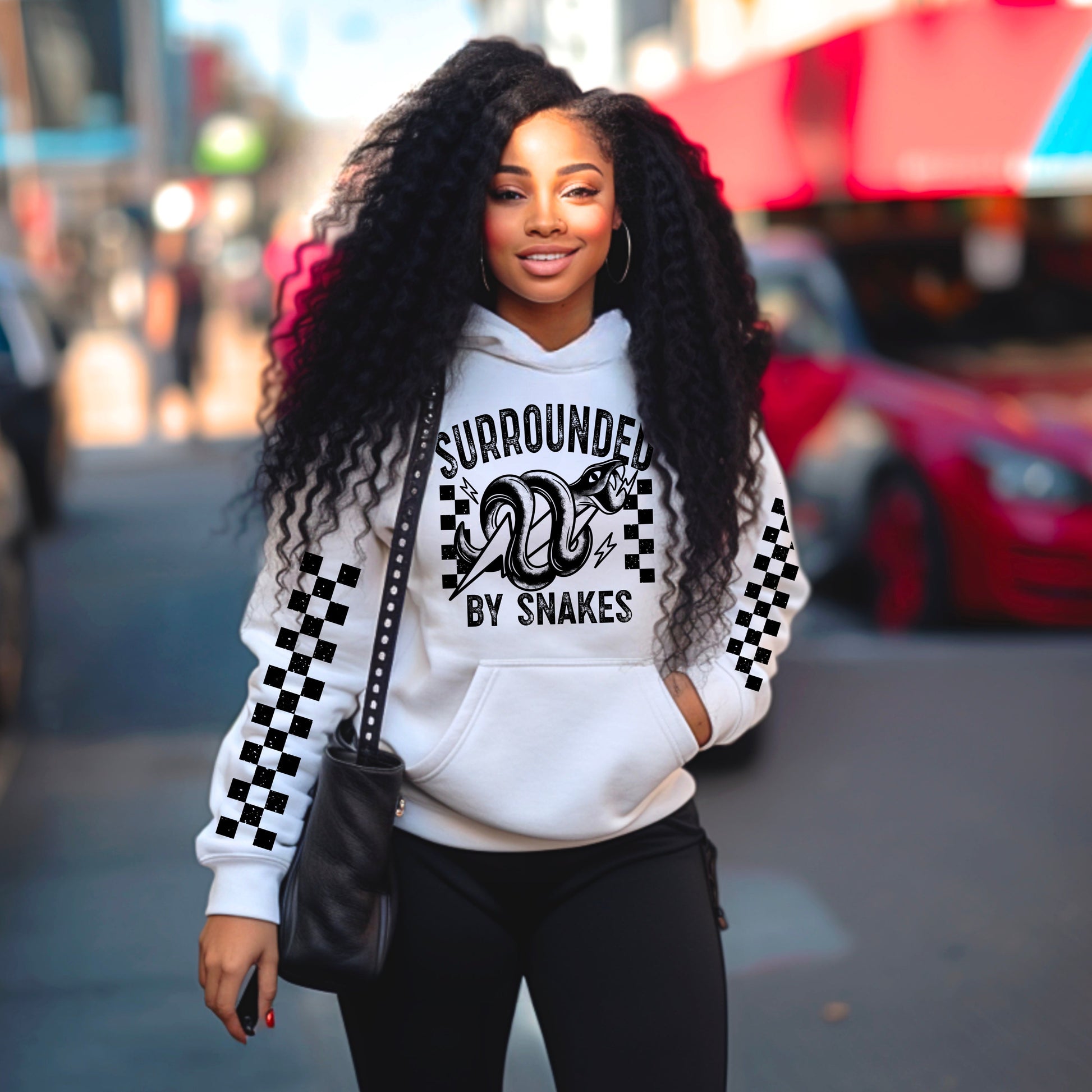 SURROUNDED BY SNAKES HOODIE FRONT & SLEEVE DESIGN
